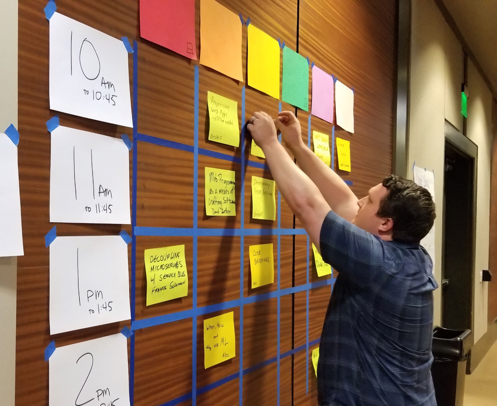 Attendees bring their own topics, either in the form of presentations or topics/questions for discussions and brainstorming, plus topics can also emerge from conversations in real time. The weekend agenda is established and agreed on site, following Open Space Technology (OST) approach.